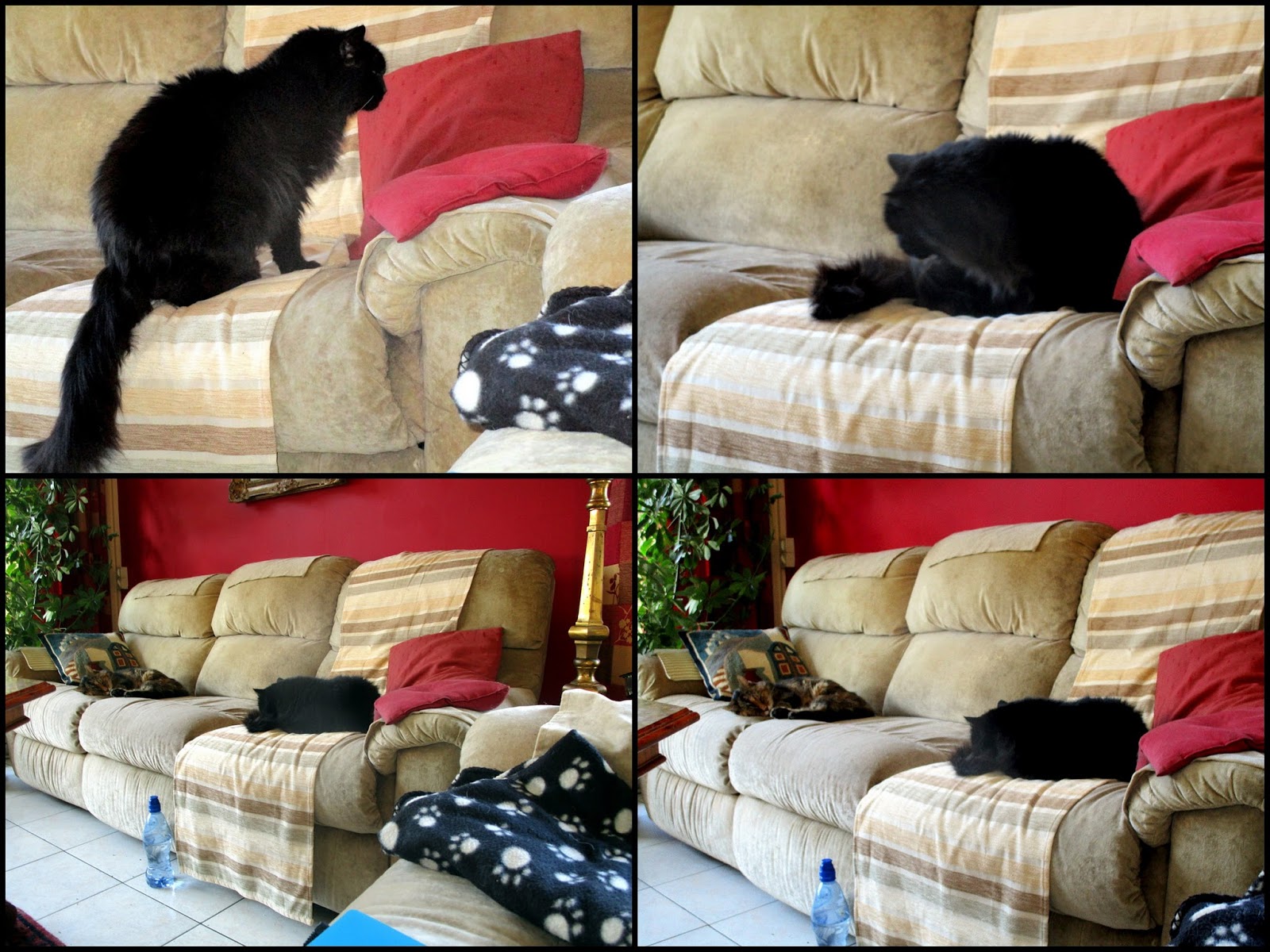 Rosie between grooming and playing model for me, bothers the others. As she is bored she "attacks" Arthur, in fact to play with him, but Arthur is too lazy for that, and Kim and Pookie hiss at her and run away. Poor Rosie !